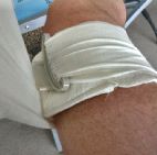 The EMERGENCY BANDAGE applies immediate direct pressure to any wound site through the sterile non-adherent pad and pressure applicator. It is so easy to use that even an injured person can apply The EMERGENCY BANDAGE with one hand.