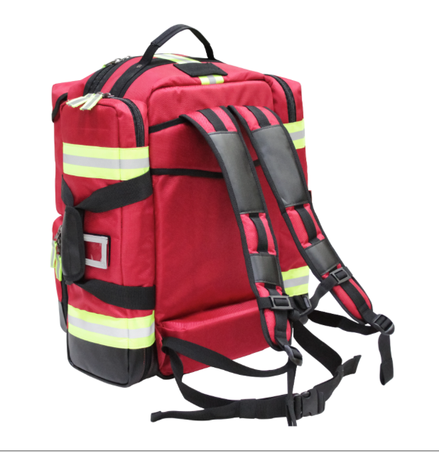 - Bright red Strong weather proof Pack with padded contour harness
